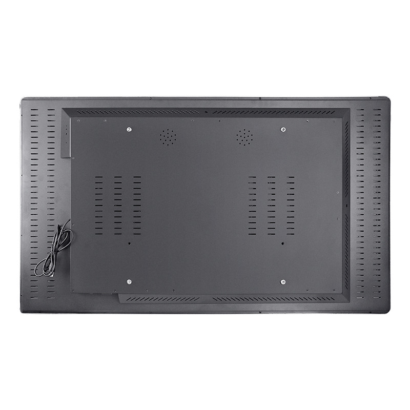 Widok z tyłu podkreśla przemysłową metalową obudowę z wieloma otworami wentylacyjnymi, wspierającymi skuteczne odprowadzanie ciepła podczas wielogodzinnej pracy. Płaska powierzchnia montażowa i wzmocniona konstrukcja sprawiają, że wyświetlacz nadaje się do montażu na ścianie lub wbudowania w kioski i szafy. Zintegrowane zarządzanie kablami i solidna tylna pokrywa pomagają utrzymać czystość i bezpieczeństwo instalacji. Zbudowany z myślą o środowiskach komercyjnych i profesjonalnych, ta konstrukcja poprawia trwałość, upraszcza konserwację i wspiera stabilną wydajność w aplikacjach ciągłego użytkowania.